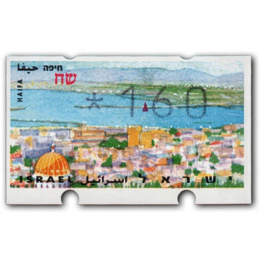 Znaczek promujący atrakcje turystyczne Izraela i sprzedawany w automatach w dowolnych wybranych przez kupującego nominałach, drukowany na papierze z widokiem miasta Hajfa. Oferowany walor ma nominał 1,60 NIS.