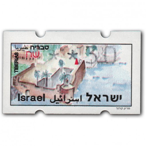 Znaczek z serii promującej atrakcje turystyczne Izraela i sprzedawany w automatach w dowolnych wybranych przez kupującego nominałach, drukowany na papierze z widokiem miasta Tyberiada. Oferowany walor ma nominał 0,30 NIS.