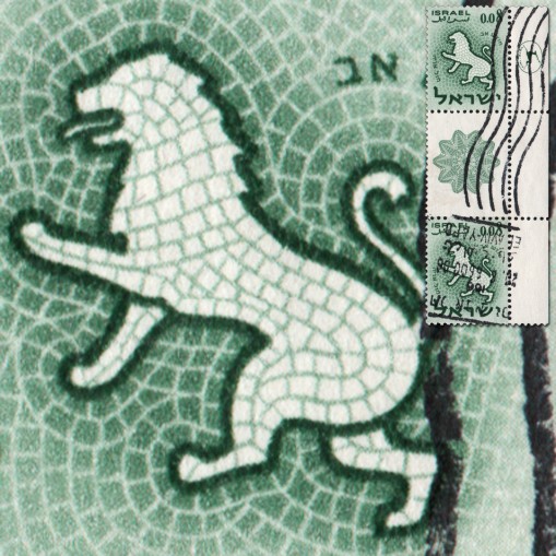 Kasowany znaczek w parce przedzielonej marginesem wewnętrznym.