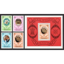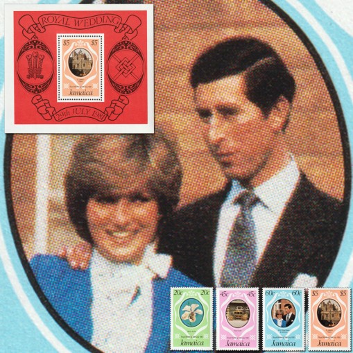 Znaczki i blok upamiętniające ślub księcia Karola i Diany Spencer.
