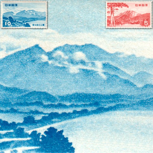 Na znaczkach przedstawiono widoki na masyw wulkanu Unzen (Unzen-dake), jednego z najbardziej aktywnych wulkanów w Japonii. Znajduje się on w Parku Narodowym Unzen-Amakusa, obejmującym ochroną obszary zachodniej części wyspy Kiusiu.