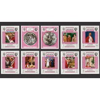 Na znaczkach widnieje papież Paweł VI i delegacja imama Mohammeda al-Badry, a także medal wydany na okazję tego spotkania.
