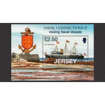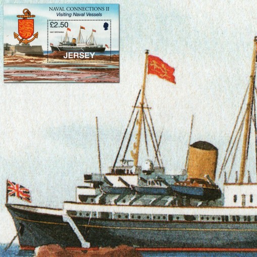 Znaczek w bloku upamiętniający przypłynięcie na Jersey królewskiego jachtu H.M.Y. „Britannia”.