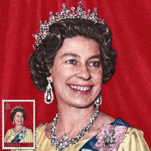 Znaczek obiegowy, na którym widnieje portret Elżbiety II.