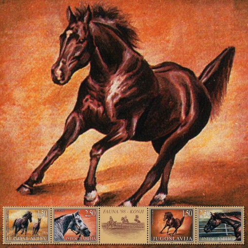 Seria w pasku z przywieszką, na znaczkach której widnieją konie.