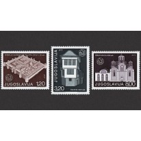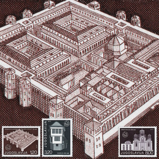 Na znaczkach widnieje pałac cesarza Dioklecjana w Splicie (III wiek), dom w Ochrydzie (XIX wiek) oraz monaster Gračanica (XIV wiek).
