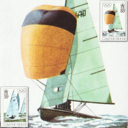 Na znaczkach widnieją jachty klasy 470 w czasie regat.