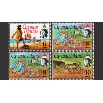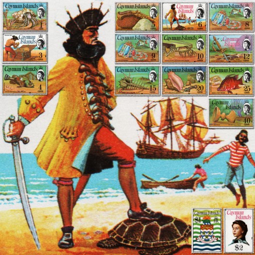 Na znaczkach, oprócz popiersia królowej Elżbiety II, widnieją piraci, zatopione skarby i zwierzęta morskie, między innymi: