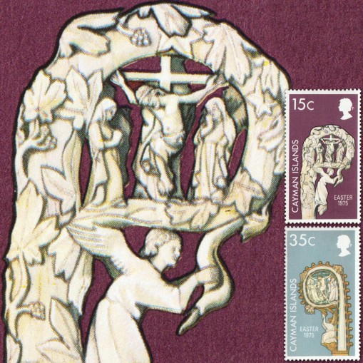 Na znaczkach widnieją bogato rzeźbione w kości słoniowej pastorały biskupie z XIV wieku przedstawiające ukrzyżowanie Chrystusa.