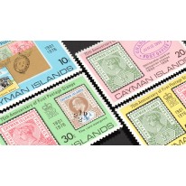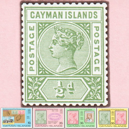 Znaczki upamiętniające 75-lecie wydawania znaczków pocztowych dla Kajmanów.