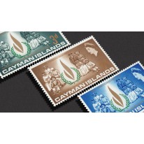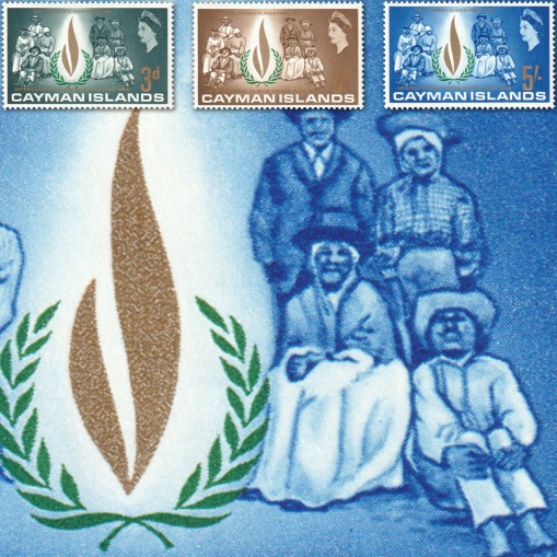 Na znaczkach widnieją niewolnicy wyzwoleni na Kajmanach w 1910 roku i logo Roku Praw Człowieka (płomień otoczony wieńcem laurowym).