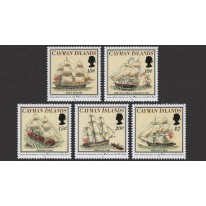 Na znaczkach widnieją różne statki handlowe i fregata HMS „Convert”.