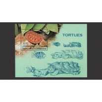 Znaczek w bloku, na którym widnieje żółw z gatunku matamata.
