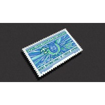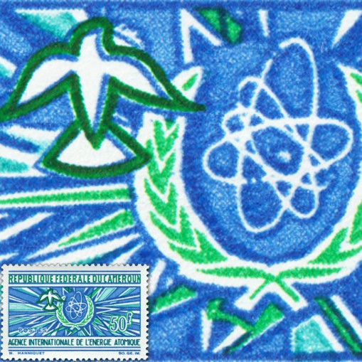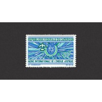 Znaczek upamiętniający 10. rocznicę powstania Międzynarodowej Agencji Energii Atomowej. Na znaczku widnieje symbol atomu, promienie energii i gołąbek pokoju.