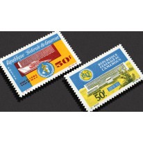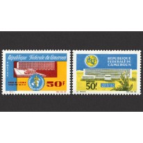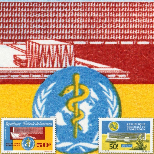 Znaczki upamiętniające, kolejno, otwarcie kwatery głównej Światowej Organizacji Zdrowia (WHO) w Genewie oraz stulecie Unii Telekomunikacyjnej (ITU). Na znaczkach widnieją budynki i loga tych organizacji.