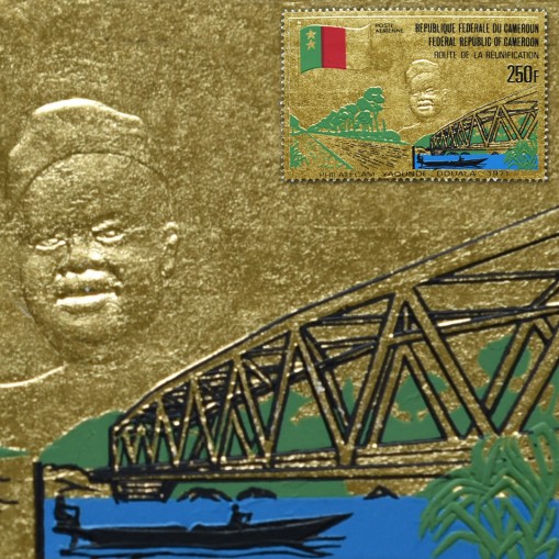Złoty znaczek wydany z okazji Międzynarodowej Wystawie Filatelistycznej „Philatecam” w Jaunde, stolicy Kamerunu.