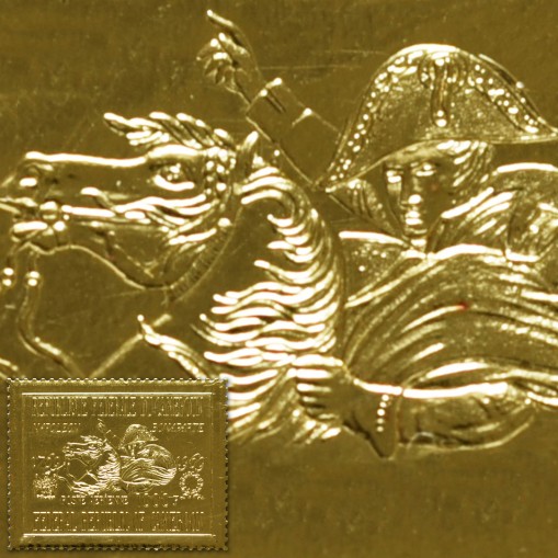 Złoty znaczek upamiętniający 200. rocznicę urodzin Napoleona Bonaparte.