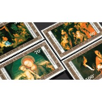 Na znaczkach widnieją reprodukcje słynnych dzieł malarstwa, kolejno: