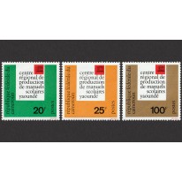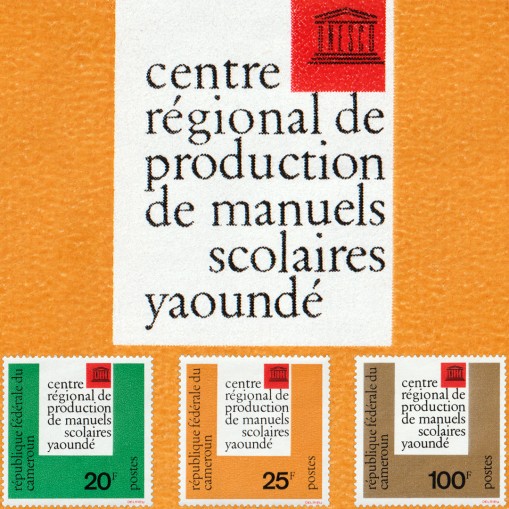 Znaczki upamiętniające otwarcie regionalnego centrum druku podręczników szkolnych w Jaunde, stolicy Kamerunu, pod patronatem UNESCO (Organizacji Narodów Zjednoczonych do spraw Oświaty, Nauki i Kultury, ang. United Nations Educational, Scientific and Cultural Organization - UNESCO).