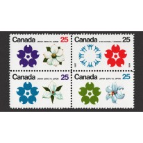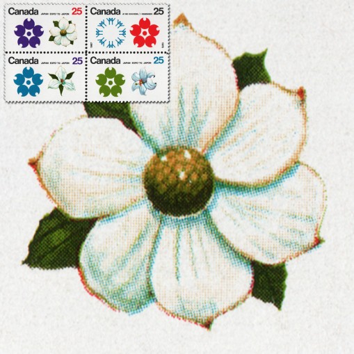 Na znaczkach widnieją kwiaty derenia, trójlista i lilii białej.