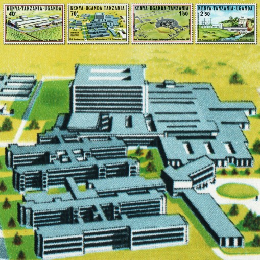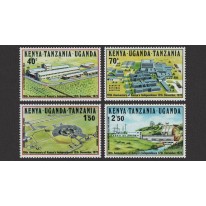 Na znaczkach widnieją kolejno: fabryka herbaty, szpital w Kenyatta, lotnisko w Nairobi oraz hydroelektrownia Kindaruma.