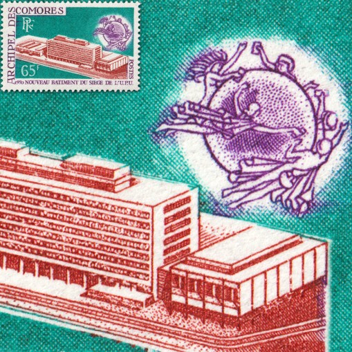 Znaczek upamiętniający inaugurację kwatery głównej Światowego Związku Pocztowego (fr. Union postale universelle, ang. Universal Postal Union, UPU) w Bernie.