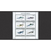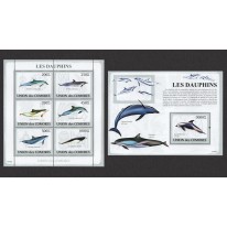 Seria w arkuszu i blok, na znaczkach których widnieją następujące gatunki delfinów: