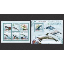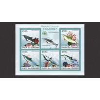 Seria w arkuszu i blok, na znaczkach których widnieją następujące gatunki delfinów: