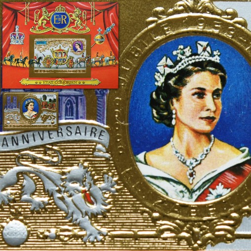 Na znaczkach widnieje królowa, Kolegiata św. Piotra w Westminsterze i królewscy strażnicy w charakterystycznych czapkach, a także kareta koronacyjna.