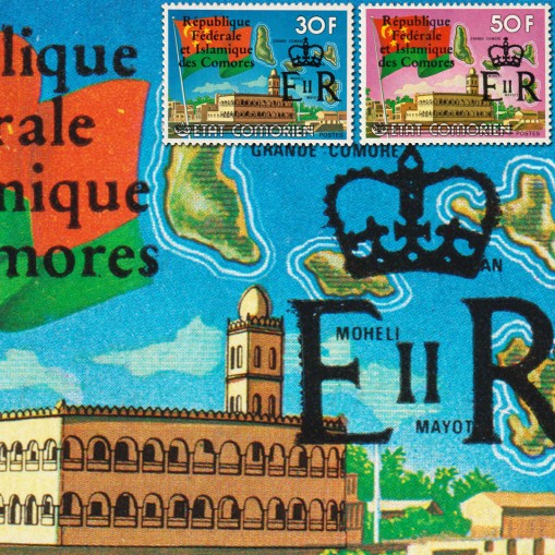 Znaczki wydane pierwotnie w 1976 roku, tym razem z nadrukowaną nową nazwą kraju (Federalna Islamska Republika Komorów) oraz inicjałami i koroną Elżbiety II. Walory upamiętniają 25. rocznicę koronacji brytyjskiej monarchini.