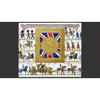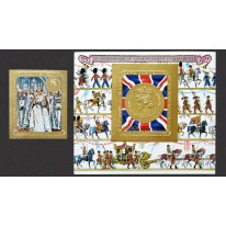 Na znaczkach widnieje królowa w szatach koronacyjnych oraz medal z popiersiem monarchini.