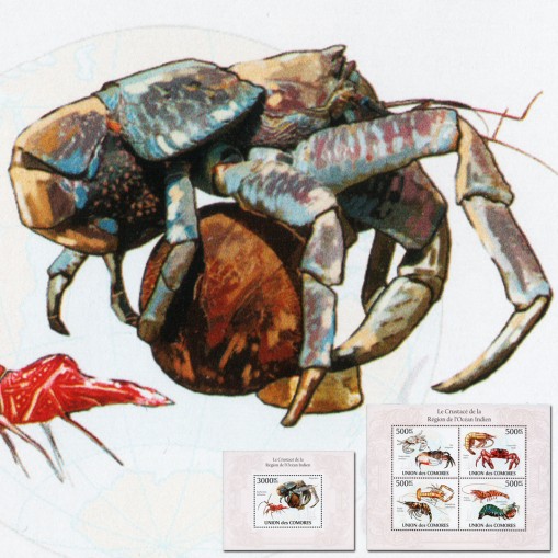 Seria w arkuszu i blok, na znaczkach których widnieją następujące gatunki skorupiaków: