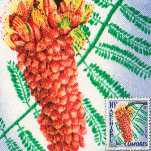 Na znaczku widnieje kwiat rośliny tropikalnej z rodziny bobowatych - Colvillea racemosa.