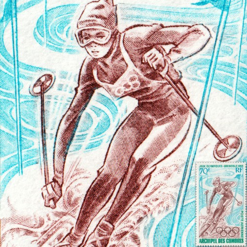 Znaczek upamiętniający zimowe igrzyska olimpijskie w Grenoble.