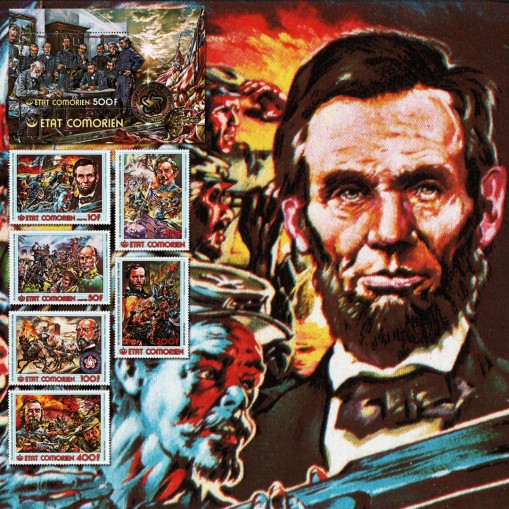 Na znaczkach widnieją bitwy wojny secesyjnej, kolejno: