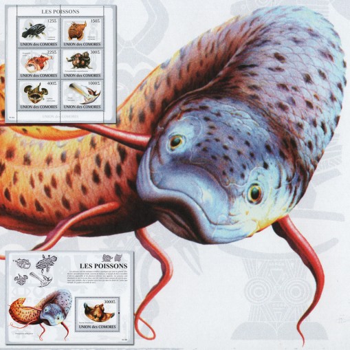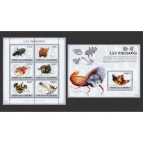 Seria w arkuszu i blok, na znaczkach których widnieją następujące gatunki ryb: