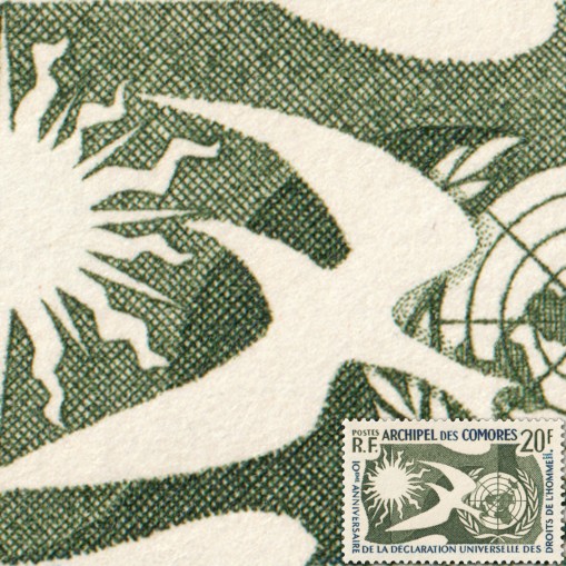 Znaczek wydany z okazji 10. rocznicy powszechnej deklaracji praw człowieka, uchwalonej przez Organizację Narodów Zjednoczonych (ONZ).