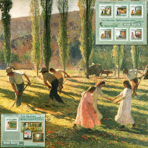 Bloki upamiętniające francuskiego malarza impresjonistę nazwiskiem Henri-Jean Guillaume Martin. Na znaczkach widnieją reprodukcje jego obrazów.
