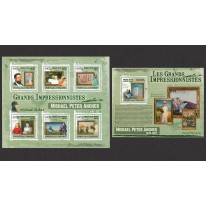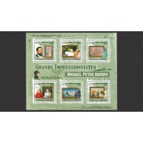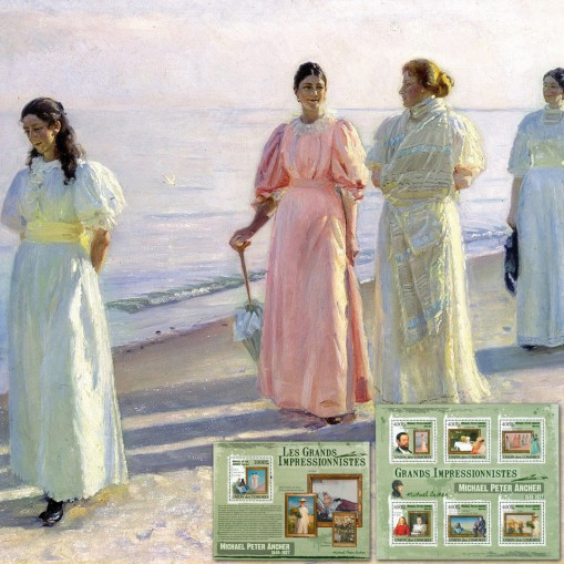 Bloki upamiętniające duńskiego malarza nazwiskiem Michael Peter Ancher. Na znaczkach widnieją reprodukcje jego obrazów.