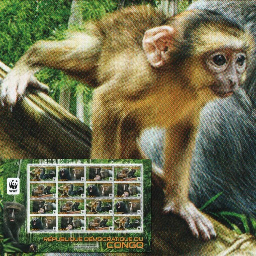 Na znaczkach widnieje koczkodan sowiogłowy.