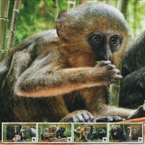 Na znaczkach widnieje koczkodan sowiogłowy.