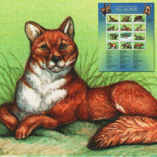 Seria w arkuszu, na znaczkach której widnieją następujące gatunki dzikich ssaków z rodziny psowatych: