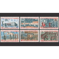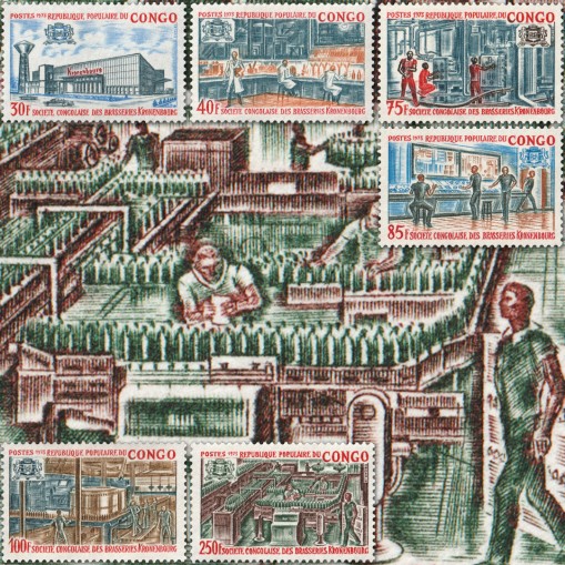 Znaczki ukazują pracę browaru Kronenburg w Brazzaville, stolicy Konga.