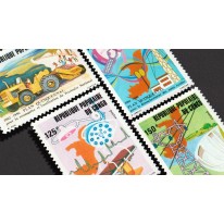 Na znaczkach przedstawiono rozwój socjalny (wyposażenie sali operacyjnej) i ekonomiczny (hydroelektrownia), rozwój terenów wiejskich (satelita i maszt telekomunikacyjny) oraz unifikację kraju (budowa drogi).