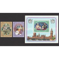 Znaczki i blok wydane rok wcześniej z okazji 25-lecia rządów królowej Elżbiety II, tym razem ze srebrnym nadrukiem upamiętniającym 25. rocznicę koronacji monarchini.