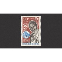 Na znaczku widnieje młody Kongijczyk i symbole nauki.