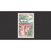 Na znaczku widnieje pociąg przejeżdżający przez wiadukt kolejowy Mayombe.