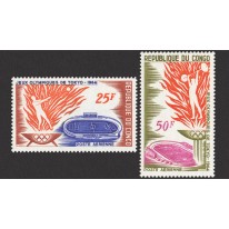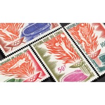 Na znaczkach widnieje płomień olimpijski, stadiony oraz następujące dyscypliny sportowe: rzut młotem, podnoszenie ciężarów, siatkówka i skok wzwyż.