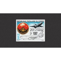 Na znaczku widnieje samolot DC-10, wieża kontroli lotów i logo ASECNA.