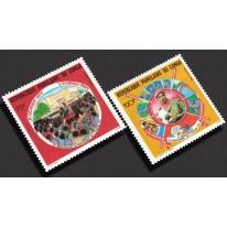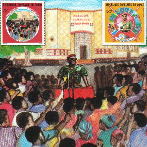 Znaczki upamiętniające dziesięciolecie objęcia władzy przez prezydenta Denisa Sassou-Nguesso 5 lutego 1979 roku.